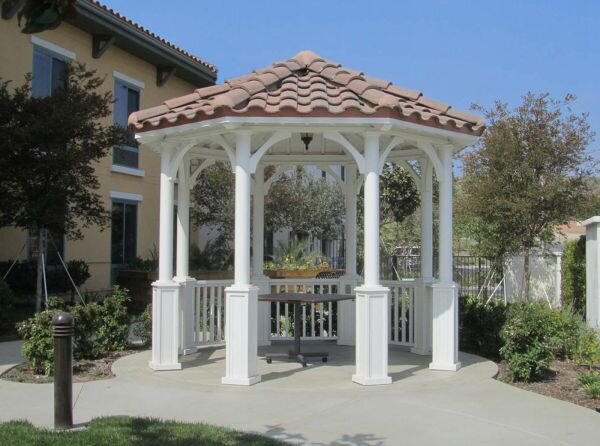 Of course, you could leave the awning on all year in many parts of the country, but it won't support a heavy snow load. Shrubs could serve several purposes around a gazebo. Avoid installing joists to the corner intersections to prevent interfering with the column beam notch connections. Make sure the king post is aligned properly, as each rafter should be perpendicular to its faces. Ensure that the rafters are well spaced in an even manner. If you don't have the time or inclination to assemble a kit, hire a contractor to do it for you.